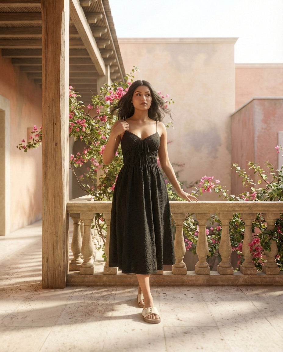 Elevate with heels and delicate jewelry for an upscale look, or go casual with sandals and a light cardigan for effortless daytime style.